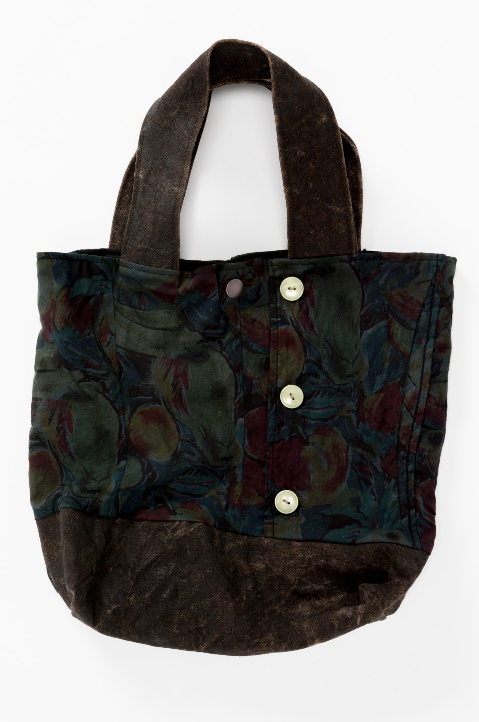 「記憶のかばん」は、タンスの奥に眠っている古着と、古着との想い出のエピソードの寄付によって生まれるかばんです。日本の伝統的な染め直し技法「黒染」と、補強の技法「つぎはぎ」「刺し子」を用いてかばんに再生し、染色前の写真とエピソードをタグに添えて販売します。色とりどりの古着は、染め直すことで一気にモノトーンになり、使い込まれた痕跡やシミは目立たなくなります。これまでの記憶を残しながらも、一度染め直し、姿をかえることで一新して、また新しい記憶を刻んでいくものになればという思いを込めて「記憶のかばん」という名前をつけました。