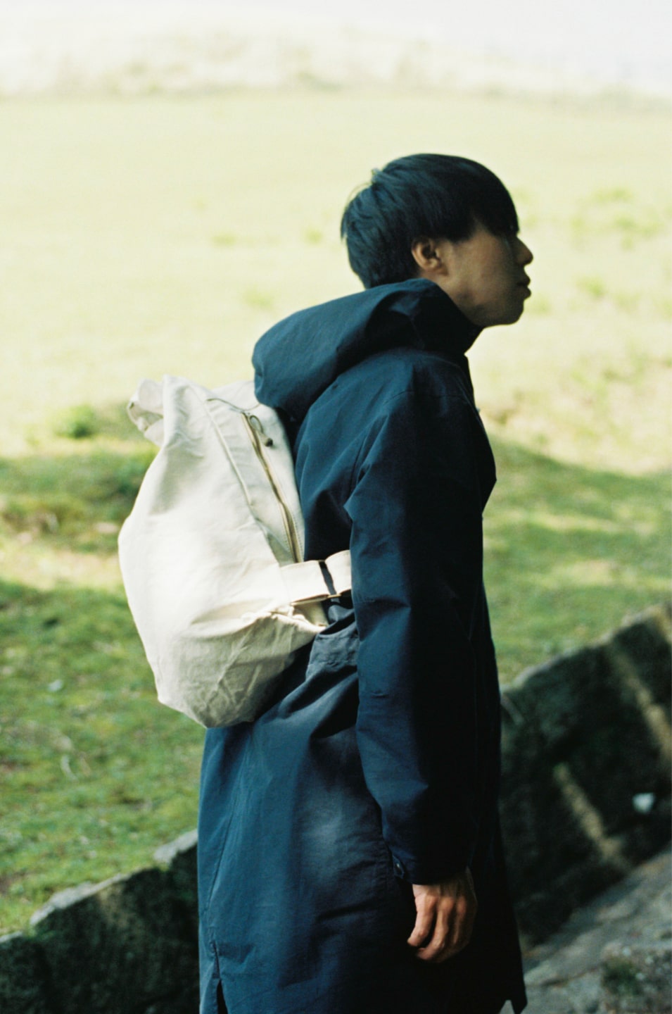 お米のふくろは、昔ながらの「米袋」の形をヒントに生まれたかばんです。特徴は、かばん上部の袋の入り口を折り重ね、封をする構造。入れるものによって、かばんのサイズを変えることができます。